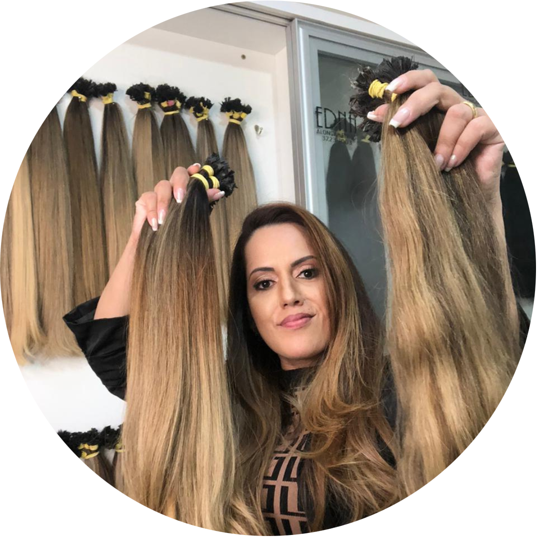Hayka Cândida de Oliveira atua há mais de 25 anos com Mega Hair e é especialista em microcápsulas de queratina.